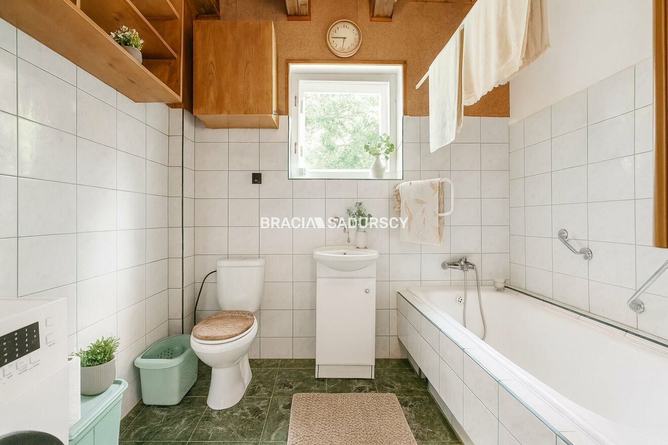 Wyposażenie łazienki: WC, wanna, umywalka, pralka, lustro |